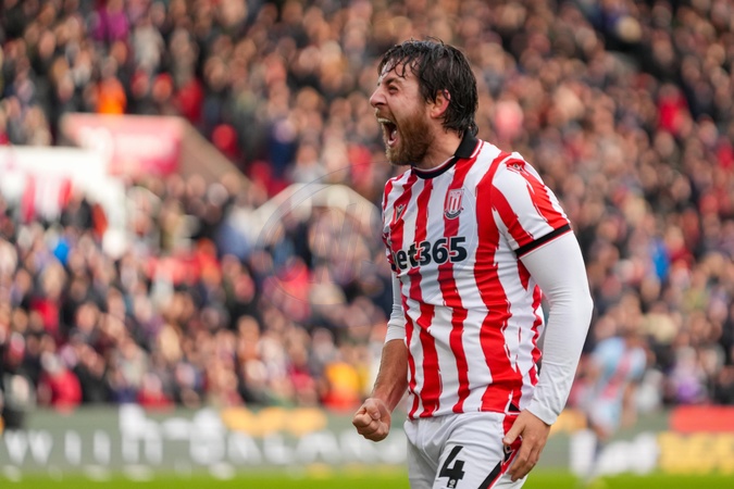 Ben Pearson of Stoke City celebrates his goal to make it 1-0 during the Sky Bet Championship match Stoke City vs Swansea City at Bet365 Stadium, Stoke-on-Trent, United Kingdom, 13th December 2025, Credit:Maynard Manyowa/News Images / Avalon