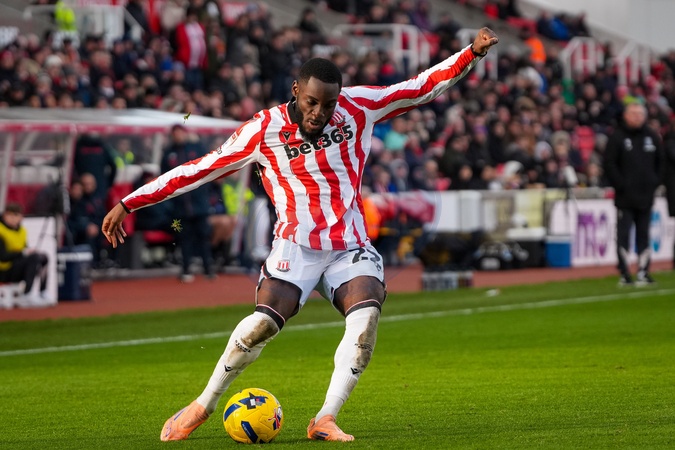 Junior Tchamadeu of Stoke City controls the ball during the Sky Bet Championship match Stoke City vs Swansea City at Bet365 Stadium, Stoke-on-Trent, United Kingdom, 13th December 2025, Credit:Maynard Manyowa/News Images / Avalon