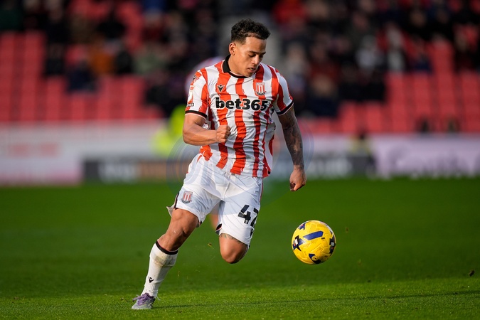 Million Manhoef of Stoke City of Stoke City runs with the ball during the Sky Bet Championship match Stoke City vs Swansea City at Bet365 Stadium, Stoke-on-Trent, United Kingdom, 13th December 2025, Credit:Maynard Manyowa/News Images / Avalon