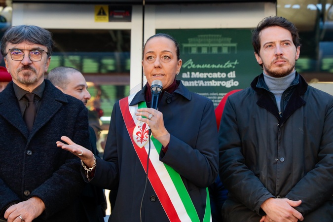 Ghiberti's Square.Inauguration of the renovation of the Sant'Ambrogio Market. Pictured are Sara Funaro, Mayor of Florence, and Jacopo Vicini, Councilor for Economic Development, Tourism, Trade Fairs, and Congresses. Florence, Italy 13 December 2025, Credit:De Martino Tommaso / Avalon