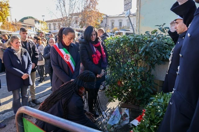 Dalmazia's Square, Commemoration of the Florence massacre of December 13, 2011, in which two Senegalese men, Samb Modou and Diop Mor, were killed by Gianluca Casseri. Pictured is Florence Mayor Sara Funaro. Florence, Italy 13 December 2025, Credit:De Martino Tommaso / Avalon