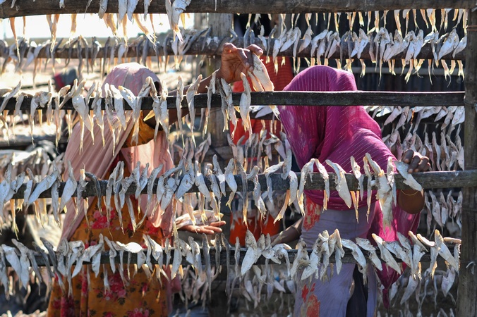 Women Process Dried Fish in Chattogram, Bangladesh