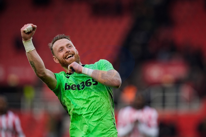 Viktor Johansson of Stoke City celebrates his team winning 2-1 during the Sky Bet Championship match Stoke City vs Swansea City at Bet365 Stadium, Stoke-on-Trent, United Kingdom, 13th December 2025, Credit:Maynard Manyowa/News Images / Avalon