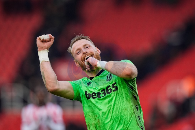 Viktor Johansson of Stoke City celebrates his team winning 2-1 during the Sky Bet Championship match Stoke City vs Swansea City at Bet365 Stadium, Stoke-on-Trent, United Kingdom, 13th December 2025, Credit:Maynard Manyowa/News Images / Avalon