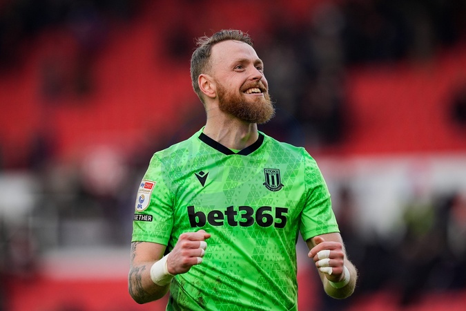 Viktor Johansson of Stoke City celebrates his team winning 2-1 during the Sky Bet Championship match Stoke City vs Swansea City at Bet365 Stadium, Stoke-on-Trent, United Kingdom, 13th December 2025, Credit:Maynard Manyowa/News Images / Avalon