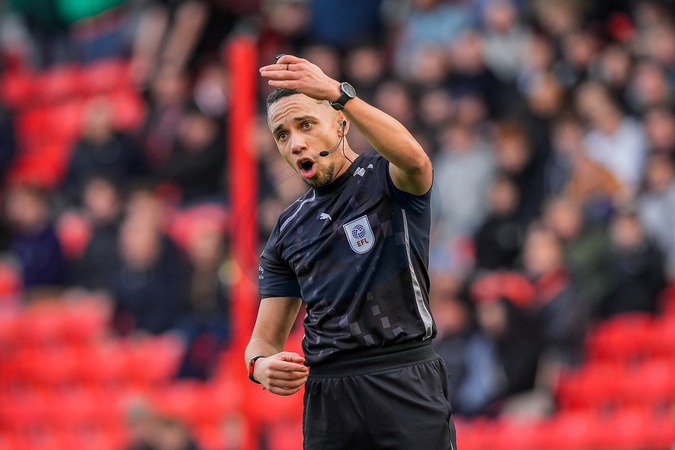 Referee Ruebyn Ricardo during the Sky Bet Championship match Stoke City vs Swansea City at Bet365 Stadium, Stoke-on-Trent, United Kingdom, 13th December 2025, Credit:Maynard Manyowa/News Images / Avalon