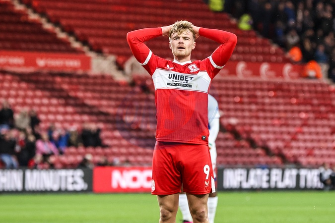 Tommy Conway of Middlesbrough reacts to a missed shot on goal during the Sky Bet Championship match Middlesbrough vs Queens Park Rangers at Riverside Stadium, Middlesbrough, United Kingdom, 13th December 2025, Credit:Ae Cosgrove/News Images / Avalon