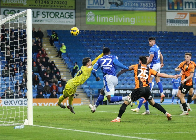 Lee Bonis of Chesterfield scores to make it 2-0 during the Sky Bet League 2 match Chesterfield vs Barnet at SMH Group Stadium, Chesterfield, United Kingdom, 13th December 2025, Credit:Richard Bierton/News Images / Avalon