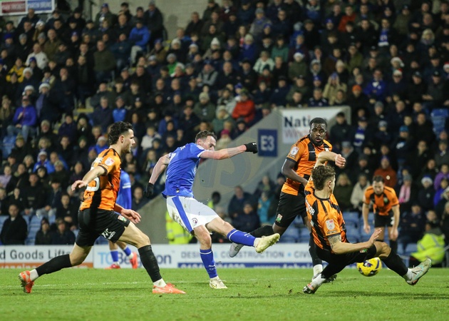 Liam Mandeville of Chesterfield scores to make it 3-1 during the Sky Bet League 2 match Chesterfield vs Barnet at SMH Group Stadium, Chesterfield, United Kingdom, 13th December 2025, Credit:Richard Bierton/News Images / Avalon