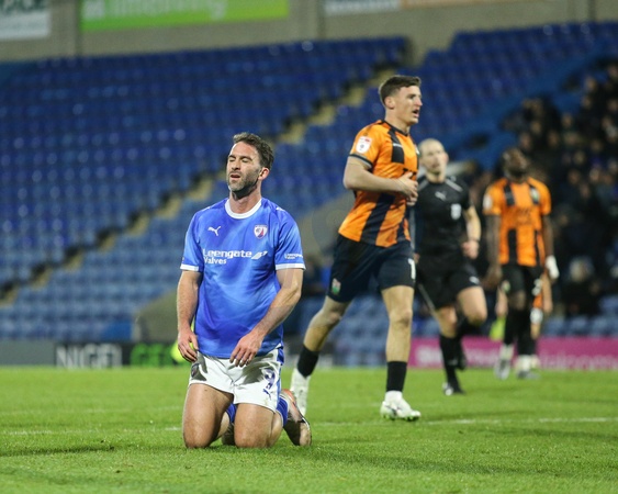 Will Grigg of Chesterfield reacts to missed chance during the Sky Bet League 2 match Chesterfield vs Barnet at SMH Group Stadium, Chesterfield, United Kingdom, 13th December 2025, Credit:Richard Bierton/News Images / Avalon