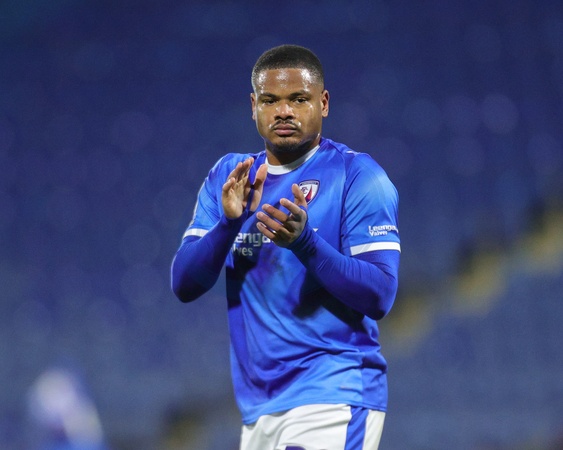 Vontae Daley-Campbell of Chesterfield applauds the fans after the game during the Sky Bet League 2 match Chesterfield vs Barnet at SMH Group Stadium, Chesterfield, United Kingdom, 13th December 2025, Credit:Richard Bierton/News Images / Avalon