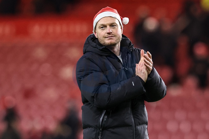 Kim Hellberg manager of Middlesbrough celebrates the win with the fans after the game during the Sky Bet Championship match Middlesbrough vs Queens Park Rangers at Riverside Stadium, Middlesbrough, United Kingdom, 13th December 2025, Credit:Ae Cosgrove/News Images / Avalon