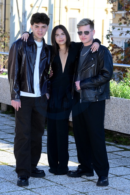 Photocall for "Sarà Sanremo." Pictured: Blind, El Ma, and Soniko. Sanremo 13 December 2025, Credit:AGF / Avalon
