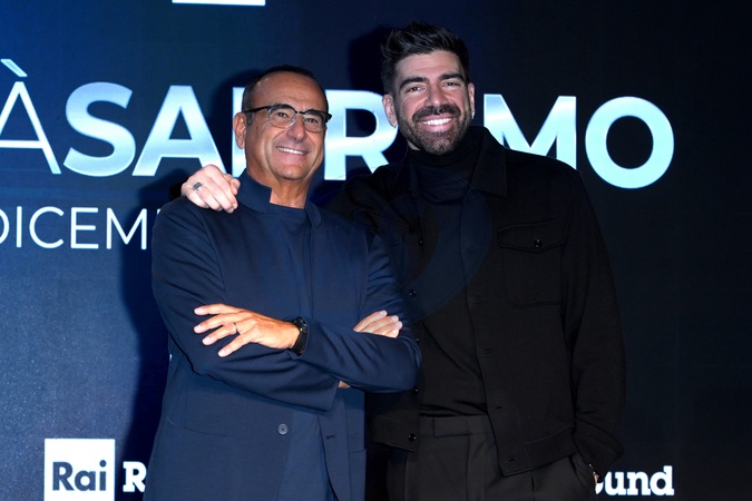 Photocall for "It Will Be Sanremo." Pictured are Carlo Conti and Gianluca Gazzoli. Sanremo 13 December 2025, Credit:AGF / Avalon