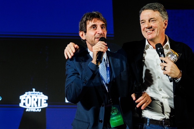 Atreju 2025, Brothers of Italy party, "The Season of Reforms" meeting. Pictured are Giovanni Donzelli, member of the Chamber of Deputies for Brothers of Italy, and Matteo Renzi, Secretary of the Democratic Party. Rome, Italy 13 December 2025, Credit:Francesco Fotia / Avalon