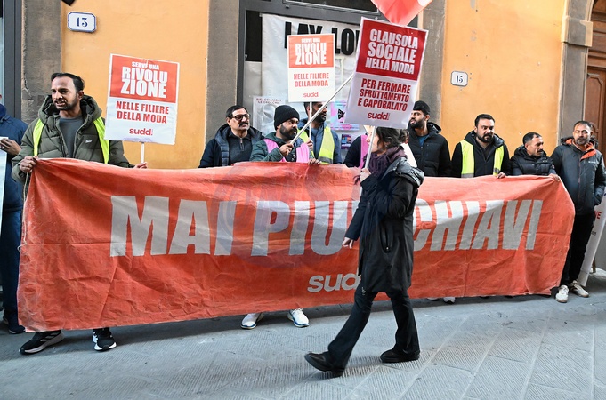 Sudd Cobas protests against subcontracting and calls for a social clause in the fashion industry. Prato, Italy 13 December 2025, Credit:Aleandro Biagianti / Avalon