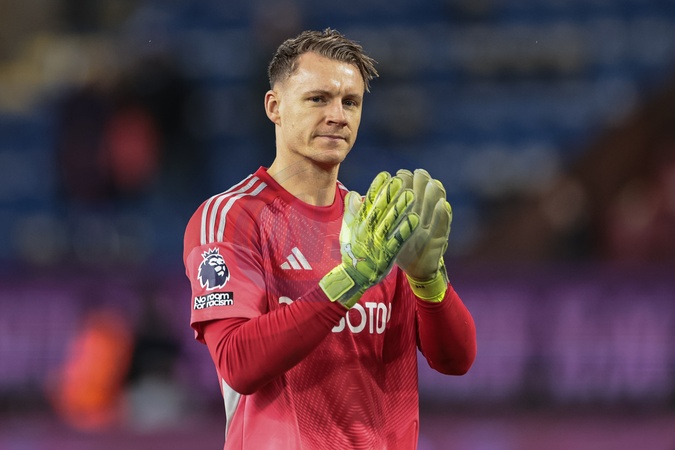 Fulham goalkeeper Bernd Leno applauds the fans after the final whistle during the Premier League match Burnley vs Fulham at Turf Moor, Burnley, United Kingdom, 13th December 2025, Credit:Mark Cosgrove/News Images / Avalon