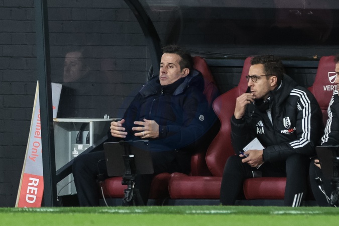Marco Silva manager of Fulham reacts while sat on the bench during the Premier League match Burnley vs Fulham at Turf Moor, Burnley, United Kingdom, 13th December 2025, Credit:Mark Cosgrove/News Images / Avalon