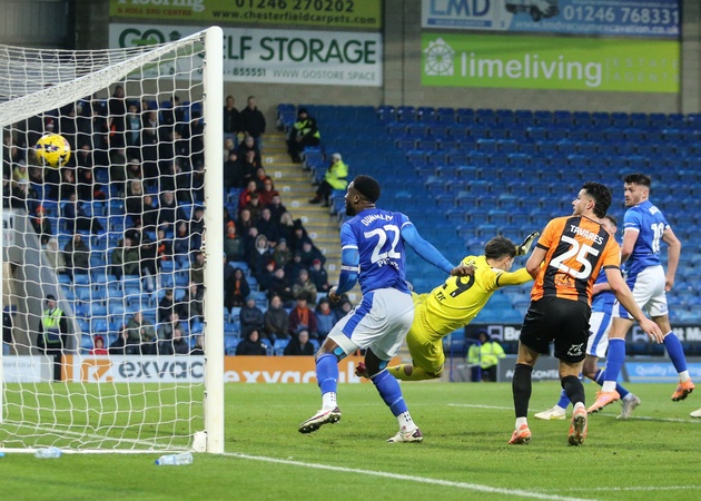 Lee Bonis of Chesterfield scores to make it 2-0 during the Sky Bet League 2 match Chesterfield vs Barnet at SMH Group Stadium, Chesterfield, United Kingdom, 13th December 2025, Credit:Richard Bierton/News Images / Avalon