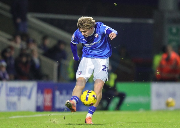 James Berry of Chesterfield passes the ball during the Sky Bet League 2 match Chesterfield vs Barnet at SMH Group Stadium, Chesterfield, United Kingdom, 13th December 2025, Credit:Richard Bierton/News Images / Avalon