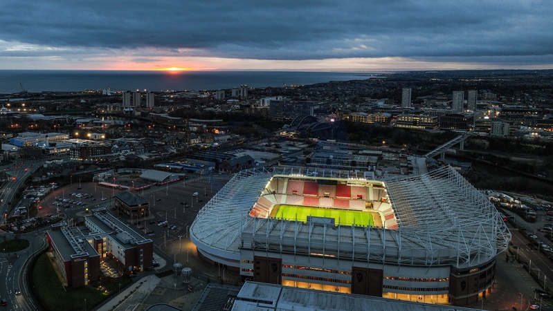 An aerial view of the Stadium Of Light during sunrise ahead of the Premier League match Sunderland vs Newcastle United at Stadium Of Light, Sunderland, United Kingdom, 14th December 2025, Credit:Ae Cosgrove/News Images / Avalon