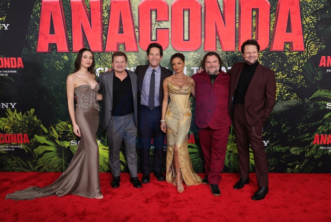 13 December 2025 . Los Angeles, California - Catherine Daniela Melchior, Steve Zahn, Paul Rudd, Thandiwe Newton, Jack Black, Selton Mello At Los Angeles Premiere Of Columbia Pictures' "Anaconda" held at The United Theater on Broadway in Los Angeles., Credit:Sadou Faye / Avalon