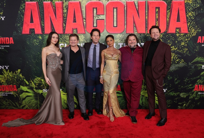 13 December 2025 . Los Angeles, California - Catherine Daniela Melchior, Steve Zahn, Paul Rudd, Thandiwe Newton, Jack Black, Selton Mello At Los Angeles Premiere Of Columbia Pictures' "Anaconda" held at The United Theater on Broadway in Los Angeles., Credit:Sadou Faye / Avalon