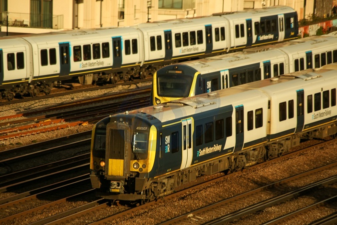 Great British Railways (GBR)/South Western Railway (SWR) trains near London Waterloo on the SWML. At the time of the pictures being taken SWR has a fleet of class 158, 159, 444, 450, 455, 458, 484 and class 701s, London, UK, 13 December 2025, Credit:Alex Day / Avalon