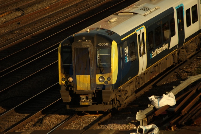 Great British Railways (GBR)/South Western Railway (SWR) trains near London Waterloo on the SWML. At the time of the pictures being taken SWR has a fleet of class 158, 159, 444, 450, 455, 458, 484 and class 701s, London, UK, 13 December 2025, Credit:Alex Day / Avalon