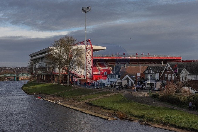 A general view of The City Ground on the banks of the river Trent during the Premier League match Nottingham Forest vs Tottenham Hotspur at City Ground, Nottingham, United Kingdom, 14th December 2025, Credit:Mark Cosgrove/News Images / Avalon