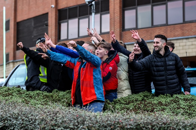 Sunderland fans chanting towards Newcastle fans before the game during the Premier League match Sunderland vs Newcastle United at Stadium Of Light, Sunderland, United Kingdom, 14th December 2025, Credit:Ae Cosgrove/News Images / Avalon