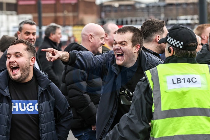 Newcastle fans and Sunderland fans clash during the Premier League match Sunderland vs Newcastle United at Stadium Of Light, Sunderland, United Kingdom, 14th December 2025, Credit:Ae Cosgrove/News Images / Avalon