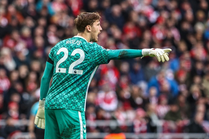 Sunderland goalkeeper Robin Roefs gives his team instructions during the Premier League match Sunderland vs Newcastle United at Stadium Of Light, Sunderland, United Kingdom, 14th December 2025, Credit:Ae Cosgrove/News Images / Avalon