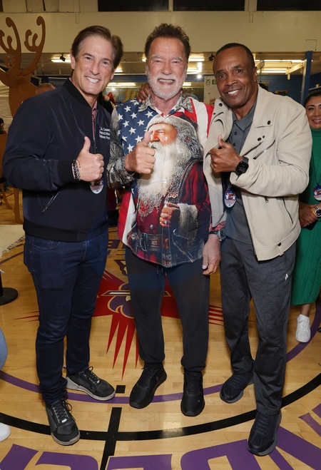 13 December 2025 . Los Angeles, California - District Attorney Nathan Hochman, Arnold Schwarzenegger, Sugar Ray Leonard, At THE 44th Annual "Miracle on 1st Street” Christmas Toy Giveaway held at Hollenbeck Youth Center in Los Angeles., Credit:Sadou Faye / Avalon