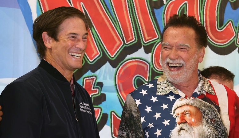 13 December 2025 . Los Angeles, California - District Attorney Nathan Hochman, Arnold Schwarzenegger, Sugar Ray Leonard, At THE 44th Annual "Miracle on 1st Street” Christmas Toy Giveaway held at Hollenbeck Youth Center in Los Angeles., Credit:Sadou Faye / Avalon
