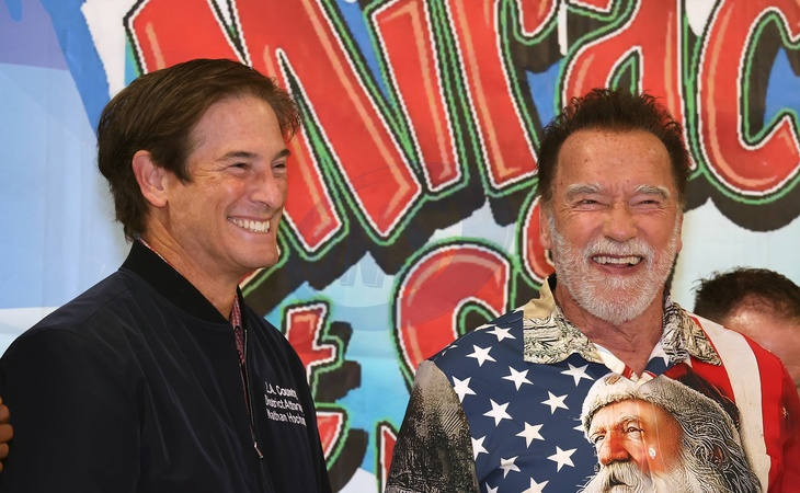 13 December 2025 . Los Angeles, California - District Attorney Nathan Hochman, Arnold Schwarzenegger, Sugar Ray Leonard, At THE 44th Annual "Miracle on 1st Street” Christmas Toy Giveaway held at Hollenbeck Youth Center in Los Angeles., Credit:Sadou Faye / Avalon