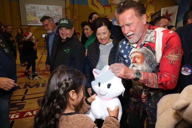 13 December 2025 . Los Angeles, California -Arnold Schwarzenegger At THE 44th Annual "Miracle on 1st Street” Christmas Toy Giveaway held at Hollenbeck Youth Center in Los Angeles., Credit:Sadou Faye / Avalon