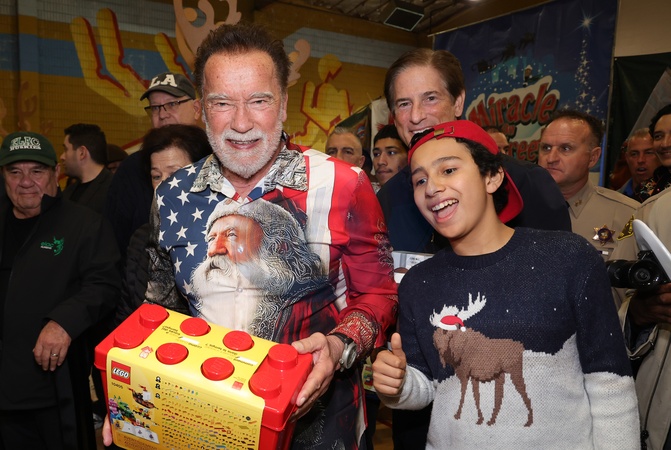 13 December 2025 . Los Angeles, California - Arnold Schwarzenegger, District Attorney Nathan Hochman, Zacky Munoz At THE 44th Annual "Miracle on 1st Street” Christmas Toy Giveaway held at Hollenbeck Youth Center in Los Angeles., Credit:Sadou Faye / Avalon