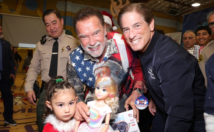 13 December 2025 . Los Angeles, California - District Attorney Nathan Hochman, Arnold Schwarzenegger, Sugar Ray Leonard, At THE 44th Annual "Miracle on 1st Street” Christmas Toy Giveaway held at Hollenbeck Youth Center in Los Angeles., Credit:Sadou Faye / Avalon