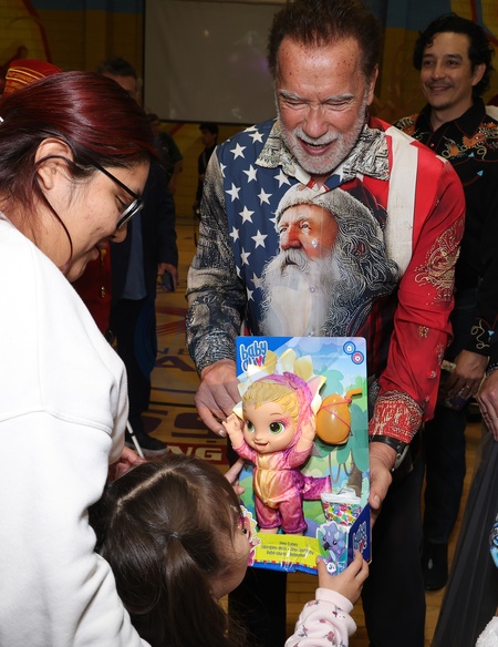 13 December 2025 . Los Angeles, California -Arnold Schwarzenegger At THE 44th Annual "Miracle on 1st Street” Christmas Toy Giveaway held at Hollenbeck Youth Center in Los Angeles., Credit:Sadou Faye / Avalon