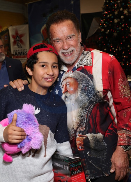 13 December 2025 . Los Angeles, California - Arnold Schwarzenegger, Zacky Muno At THE 44th Annual "Miracle on 1st Street” Christmas Toy Giveaway held at Hollenbeck Youth Center in Los Angeles., Credit:Sadou Faye / Avalon