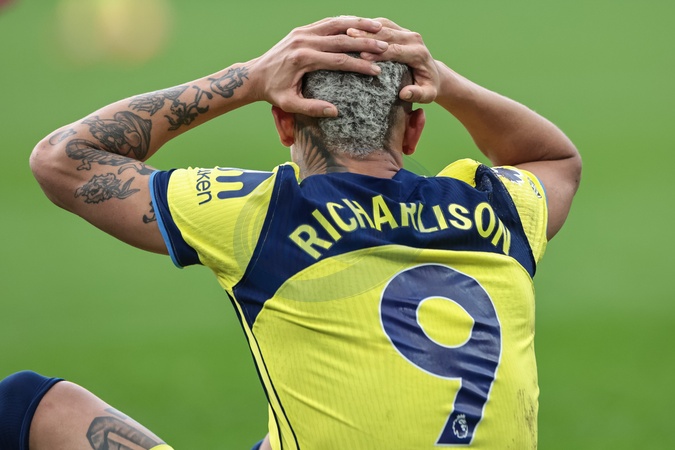 Richarlison of Tottenham Hotspur reacts during the Premier League match Nottingham Forest vs Tottenham Hotspur at City Ground, Nottingham, United Kingdom, 14th December 2025, Credit:Mark Cosgrove/News Images / Avalon