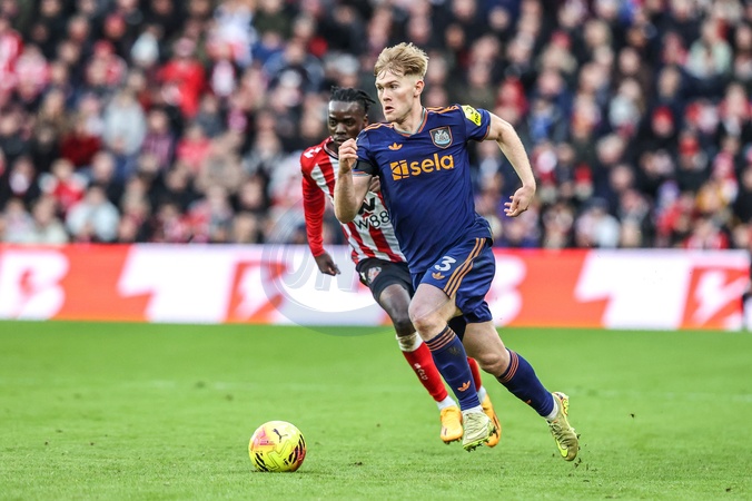 Lewis Hall of Newcastle United breaks with the ball during the Premier League match Sunderland vs Newcastle United at Stadium Of Light, Sunderland, United Kingdom, 14th December 2025, Credit:Ae Cosgrove/News Images / Avalon