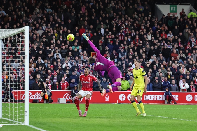 Callum Hudson-Odoi of Nottingham Forest scores to make it 2-0 during the Premier League match Nottingham Forest vs Tottenham Hotspur at City Ground, Nottingham, United Kingdom, 14th December 2025, Credit:Mark Cosgrove/News Images / Avalon