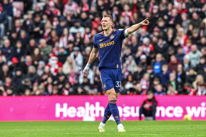 Dan Burn of Newcastle United gives his team instructions during the Premier League match Sunderland vs Newcastle United at Stadium Of Light, Sunderland, United Kingdom, 14th December 2025, Credit:Ae Cosgrove/News Images / Avalon