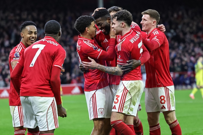 Ibrahim Sangare of Nottingham Forest celebrates his goal to make it 3-0 with team mates during the Premier League match Nottingham Forest vs Tottenham Hotspur at City Ground, Nottingham, United Kingdom, 14th December 2025, Credit:Mark Cosgrove/News Images / Avalon