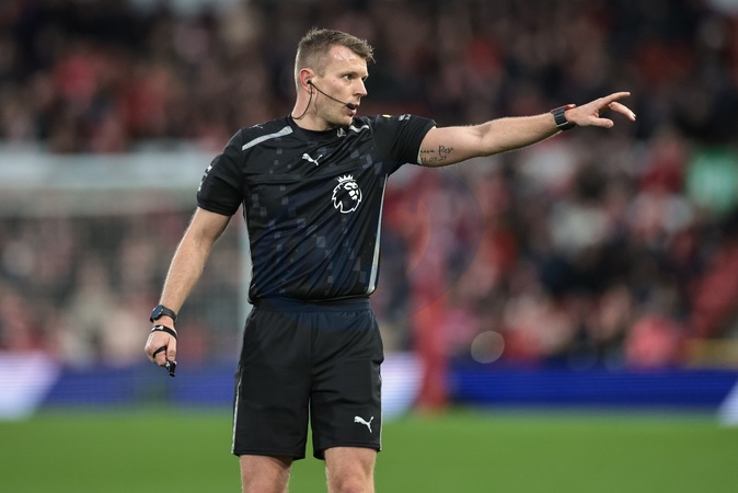 Referee Sam Barrott in action during the Premier League match Nottingham Forest vs Tottenham Hotspur at City Ground, Nottingham, United Kingdom, 14th December 2025, Credit:Mark Cosgrove/News Images / Avalon