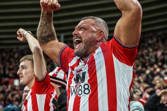 Sunderland fans celebrate the win during the Premier League match Sunderland vs Newcastle United at Stadium Of Light, Sunderland, United Kingdom, 14th December 2025, Credit:Ae Cosgrove/News Images / Avalon
