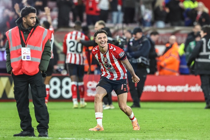 Chemsdine Talbi of Sunderland celebrates the win during the Premier League match Sunderland vs Newcastle United at Stadium Of Light, Sunderland, United Kingdom, 14th December 2025, Credit:Ae Cosgrove/News Images / Avalon