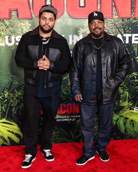 LOS ANGELES, CALIFORNIA, USA - DECEMBER 13: American actor, rapper and songwriter O'Shea Jackson Jr. and father/American rapper, actor, producer, and songwriter Ice Cube (O'Shea Jackson Sr.) arrive at the World Premiere Of Columbia Pictures' 'Anaconda' held at The United Theater on Broadway at STILE Downtown Los Angeles by Kasa on December 13, 2025 in Los Angeles, California, United States., Credit:Xavier Collin / Avalon